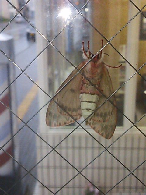 窓にでかい蛾がべったり…泣き