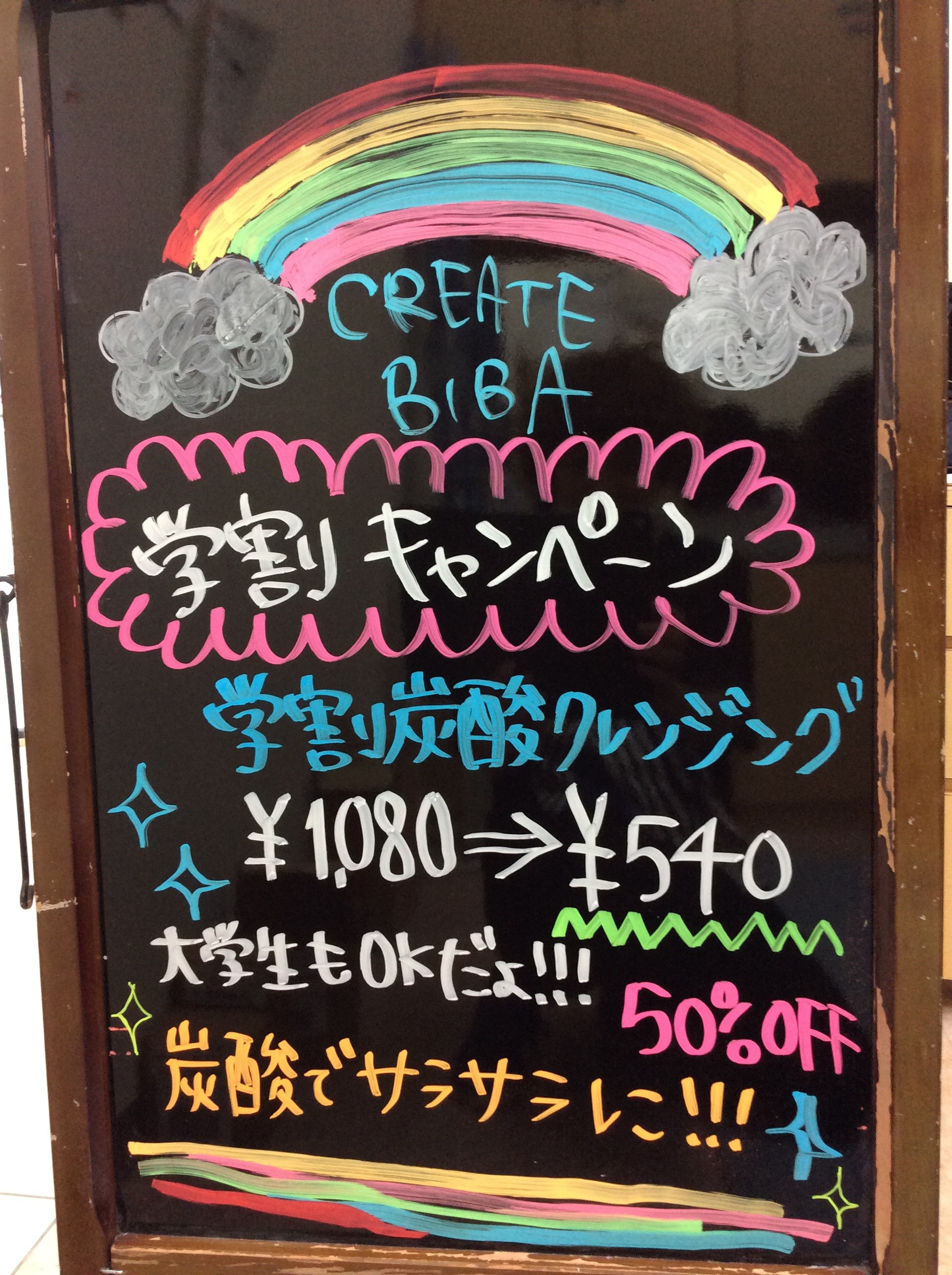 CREATE BIBA 8月 学割キャンペーン*\(^o^)/*