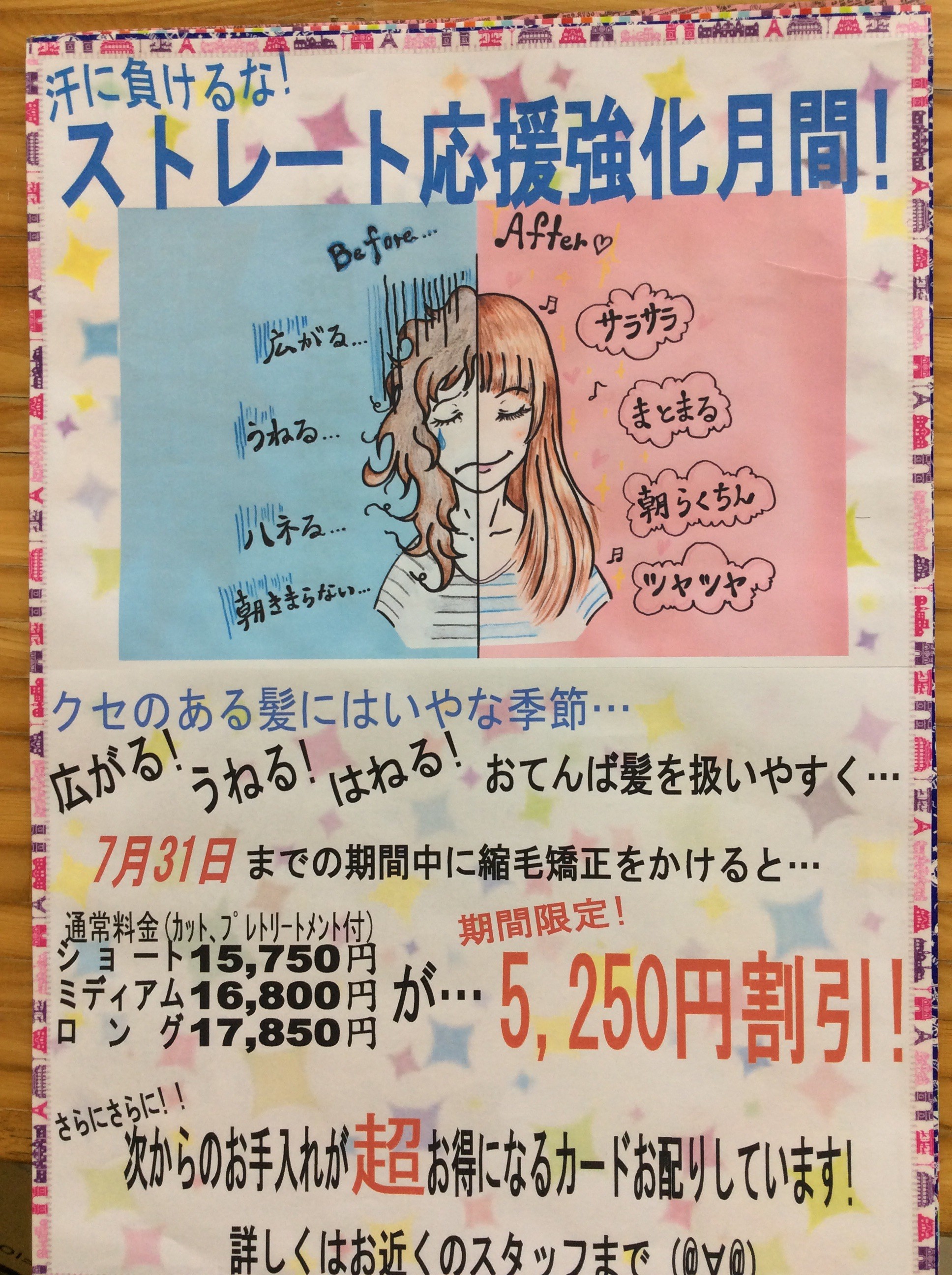 ✋4ヶ月以内の縮毛矯正の価格を通常料金から4,200円割引!!!